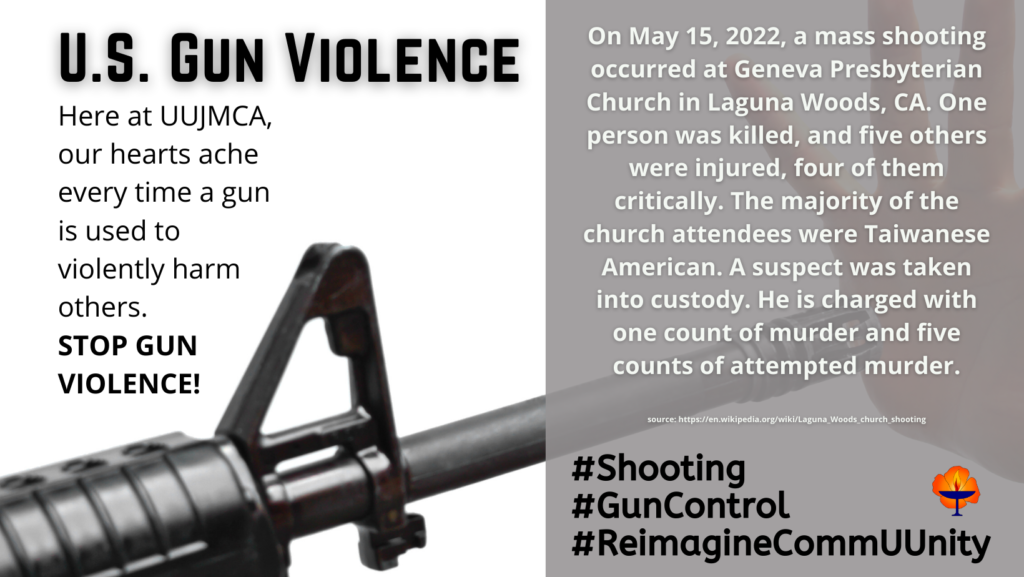 The UUA and UUJMCA stands in solidarity with the Asian American and Pacific Islander community in condemning hate crime and gun violence. Our communities stand united against racism against Asian American Pacific Islander communities. Together, we can stop it. JOIN STOP APPI HATE!